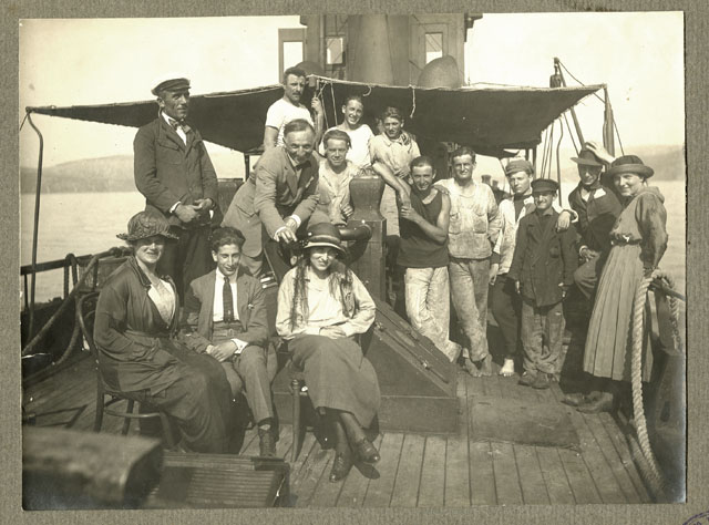 Sul rimorchiatore della Regia Marina nel canale dell'Arsa: commendatore G. Cirilli, A. Morassi, Bruna Tamaro, l'assistente Rimini, la signorina L. Stanich