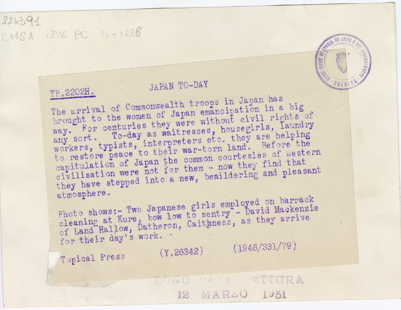 Colecchia Claudia, Peace is here! Fotografie di propaganda degli Americani in Estremo Oriente nel fondo Usis della Fototeca dei Civici Musei di Storia ed Arte, Trieste, 2017, p. 64 Consulta OPAC