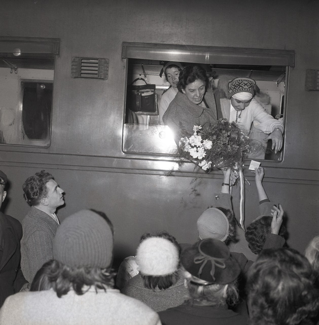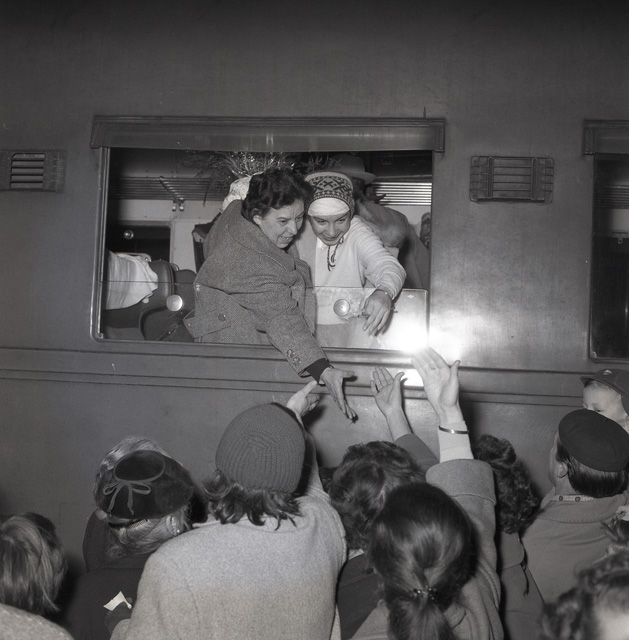 La giovane gradiscana Alessandra Fornasiero rientra da un viaggio a Stoccolma dove è stata operata dal professore Herbert Olivecrona. Con una sottoscrizione il Piccolo finanzia l'intervento che viene descritto nelle pagine del giornale. La documentazione fotografica utilizzata dal giornale è di Giornalfoto. Il servizio di Foto Omnia documenta anche il rientro a Gradisca.