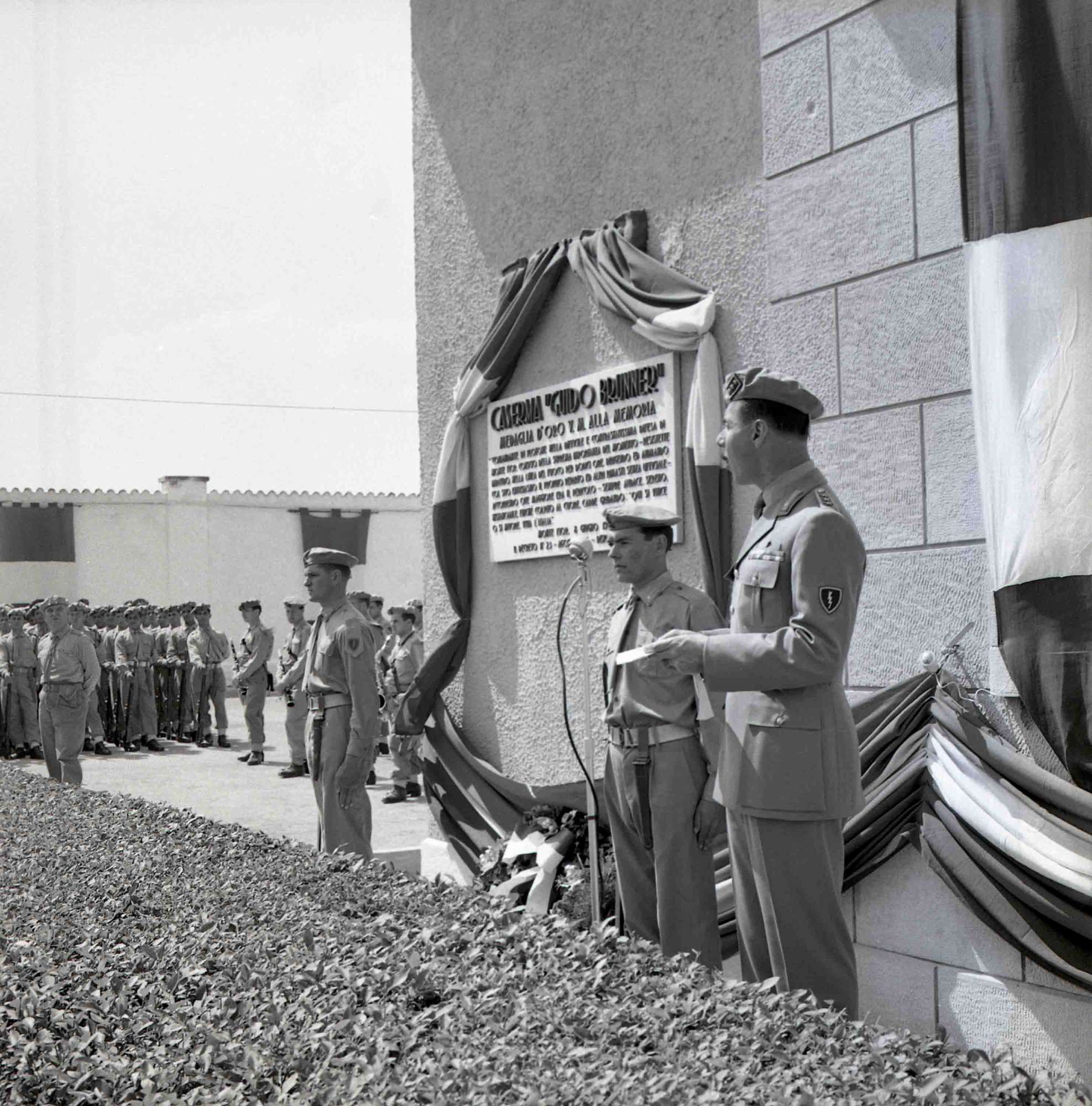 Nel giorno del quarantesimo anniversario della morte sul campo di battaglia della medaglia d'oro Guido Brunner viene posta una lapide nel cortile della caserma dove è di stanza l'82° fanteria Torino comandato dal colonnello Alberto Nencha. Partecipano alla cerimonia numerose autorità. Fra i convenuti presenti il generale Vismara, il commissario del Governo Palamara, il presidente della provincia Gregoretti, il Sindaco di Trieste Franzil, il Questore Buttiglione, il Procuratore generale Grieb, il comandante dei Carabinieri Mele e diversi altri rappresentanti di istituzioni e associazioni. Notizie tratte da Il Piccolo del 9 giugno 1959