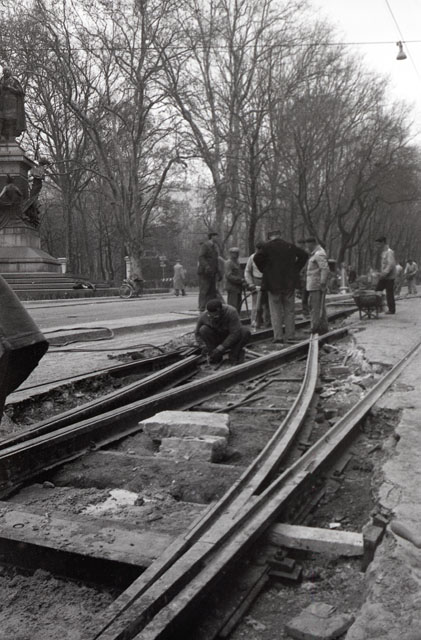 Binario tram provvisorio via Giulia