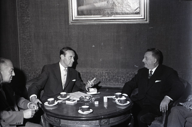 L'ambasciatore Klaiber arriva in città con la nave Saturnia. Accompagnato dal presidente della Camera di commercio Caidassi e dal presidente dell'Ente Fiera Suttora, Klaiber incontra alcuni dei maggiori esponenti della vita economica cittadina. Tratto da Il Piccolo sera del 22.09.1962