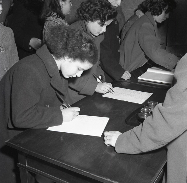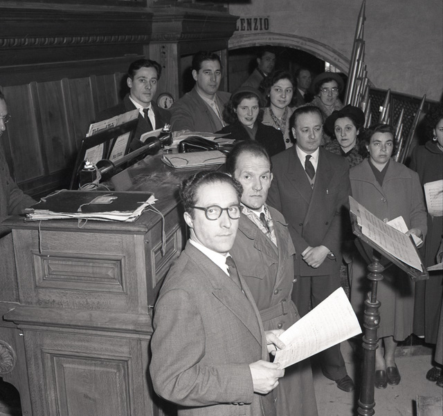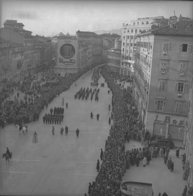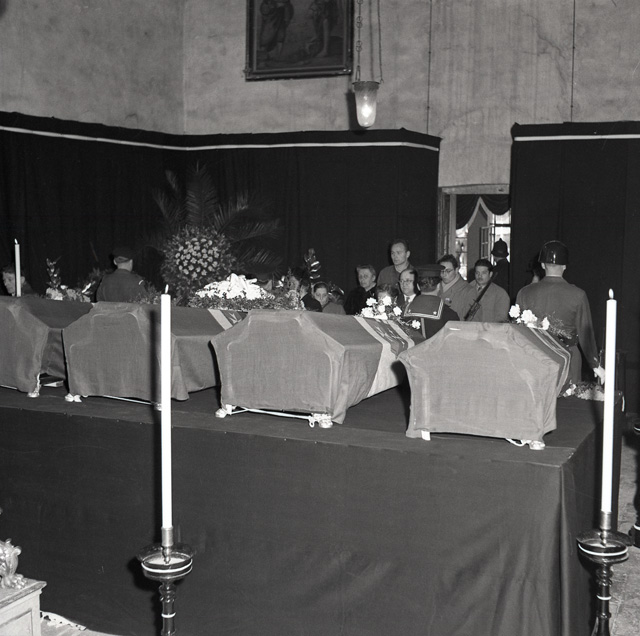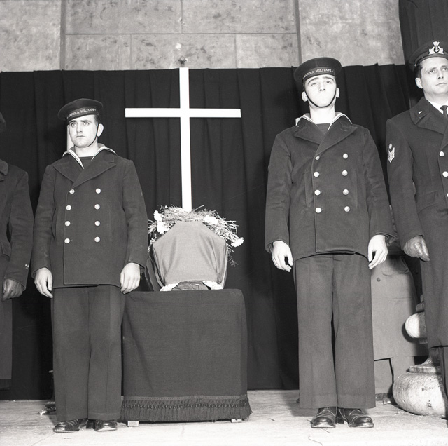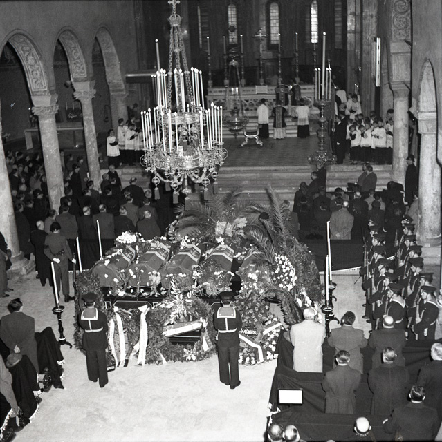 Cerimonia funebre per le salme dei cinque marinai della nave da guerra Berenice affondata il 9 settembre 1943 dalle truppe tedesche nel golfo di Trieste, e recuperate nei mesi di gennaio e febbraio del 1951
