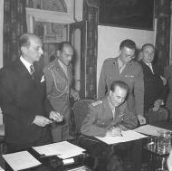 Continuano i festeggiamenti in citta. Il 6 ottobre 1954 il generale De Renzi incontra il generale Winterton a Duino per la firma dell'accordo per il trasferimento dei poteri sulla Zona A all'Italia. Albaro Vescovà e altre frazioni del comune di Muggia passano sotto amministrazione iugoslava: parte della popolazione organizza la partenza per Trieste e il trasloco di mobili e masserizie. Un'autocolonna del contingente statunitense parte dal campo sportivo di Opicina e lascia la Zona A attraverso il posto di blocco del Lisert.