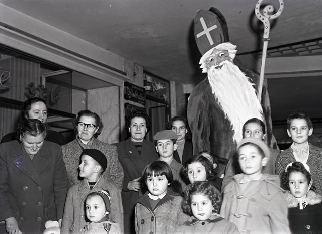 Per ricevere i doni desiderati, i bambini affidano la loro lettera a un grande San Nicolo' di cartone, e posano per la fotografia.