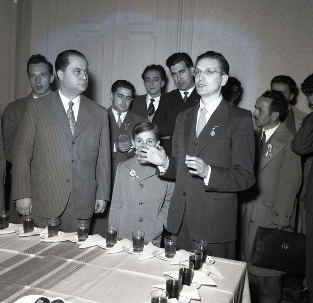 Un'autocolonna tricolore proveniente da Reggio Emilia che porta la prima bandiera tricolore della Repubblica Cisalpina donata dal Comune di Reggio Emilia alla città di San Giusto arriva il 31 ottobre in Piazza Unità. L'autocolonna viene prima ricevuta a Miramare e poi scortata fino a Piazza Unità da una colonna del Vespa Club. Testo tratto da Il Piccolo, 31.10.1954, p. 2.