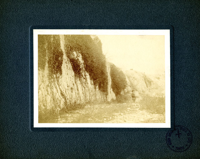 Il cosiddetto “Palazzo d’Attila” è situato sull’altura che domina l’attuale Villaggio del Pescatore. La persona seduta sulle rovine è il prof. Alberto Puschi, direttore del Museo di Storia ed Arte di Trieste.