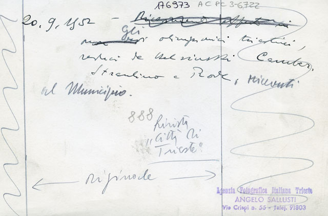 20.9.1952 : Gli olimpionici triestini, reduci da Helsinki Camber, Straulino e Rode ricevuti al Municipio