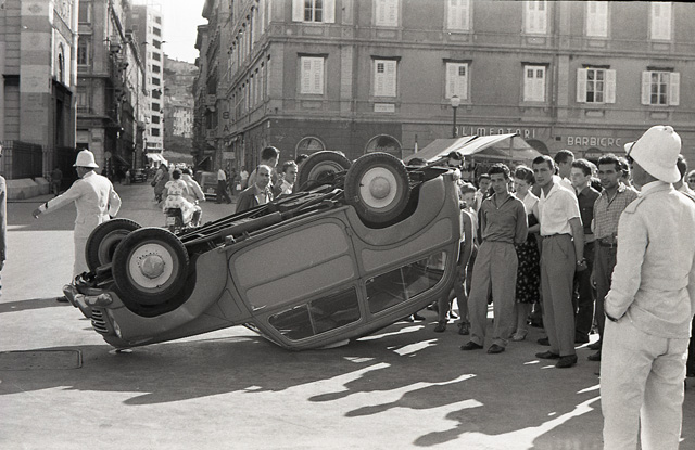 Via Rossini : Autovettura Belvedere rovesciata da Volkswagen