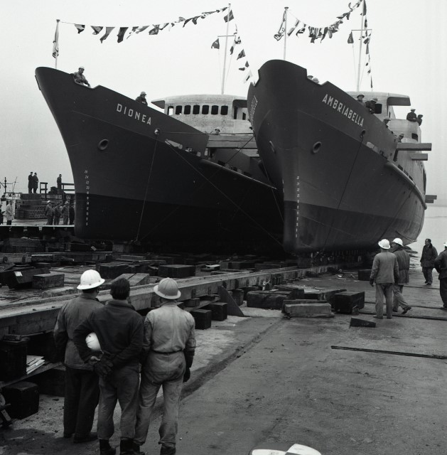 Nel 1960 la Società di Navigazione Istria-Trieste cedette la gestione delle linee di navigazione tra il Golfo di Trieste e la costa istriana alla Societa Navigazione Alto Adriatico di Trieste, insieme col piroscafo che vi veniva impiegato, il vecchio Vettor Pisani, costruito nel 1909. Il 30 maggio del 1961 la società commissionò al Cantiere Navale Felszegi di Muggia la costruzione di tre nuovi traghetti per il trasporto dei passeggeri. Nel 1962 il Vettor Pisani venne messo in disarmo e sostituito dalle bellissime motonavi gemelle Ambriabella e Dionea e dalla piu grande Edra. L'11 gennaio 1962 ci fu il triplice varo, l'Ambriabella e la Dionea, essendo gemelle, furono varate unite tra loro. Mentre l'Edra venne subito destinata ai collegamenti lungo la penisola istriana (tra Trieste e Capodistria, Pirano, Umago, Cittanova, Parenzo, Rovigno e Pola), la Dionea e l'Ambriabella si alternarono sulla linea Trieste-Muggia-Capodistria, oltre che su quella per Grignano-Sistiana (Dionea) e per Grado (Ambriabella). L'Ambriabella venne messa in disarmo nel 1975, poi venduta nel 1976 ad un armatore greco-cipriota e ribattezzata Ios e poi Ios Express. Nel 1996 venne ceduta ad una società greca e nuovamente ribattezzata prima Ionion Express, poi Ambria Bella e infine messa in disarmo al Pireo. Alla fine del 2009 venne trasferita a Trieste per essere trasformata in yacht di lusso per charter dall'Officina Navale Quaiat. La Dionea invece nel 1979 venne ceduta al Lloyd triestino, in seguito al passaggio di gestione delle linee di navigazione su cui era impiegata. Nel 1987 le medesime linee vennero affidate alla Società Adriatica di Navigazione di Venezia. Nel 1991 venne messa in disarmo, nel 1993 ceduta ad un armatore greco e ribattezzata Kalara. Nel 1999 venne trasferita al Cantiere T. Mariotti di Genova per essere ristrutturata e trasformata in yacht di lusso per charter nuovamente con il nome Dionea. L'Edra nel 1978 è stata venduta al Ministero dei Trasporti, Azienda Autonoma Ferrovie dello Stato, e trasferita nello Stretto di Messina. In disarmo nel giugno 1994, nel 1995 venne ceduta ad una societa calabrese.