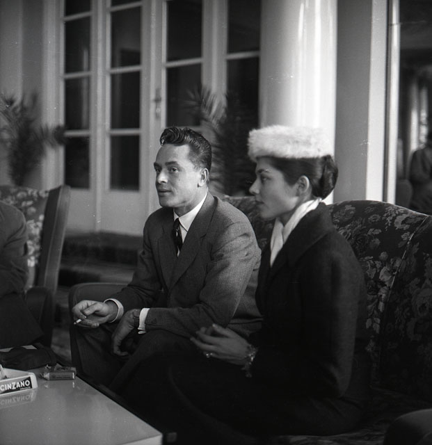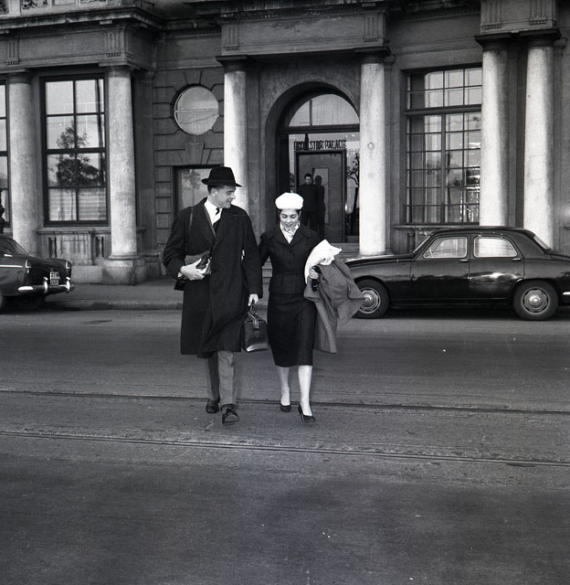 La Principessa Hélène d’Orleans (terzogenita dei Conti di Parigi) sposa il 17 gennaio 1957 il Conte belga Evrard de Limburg-Stirum a Dreux. La sposa indossa un meraviglioso abito di Dior. La principessa viene immortalata da Ugo Borsatti mentre con il marito si imbarca sulla motonave Europa per raggiungere la Rodesia, nell'atto di sfilare la scarpa stretta. Durante il breve soggiorno triestino sono accompagnati dal principe Raimondo della Torre e Tasso. Raggiungeranno il Ranch Rudolphia, grande tenuta del conte Evrard nella foresta africana. La foto è pubblicata su Il Piccolo del 30 gennaio 1957.