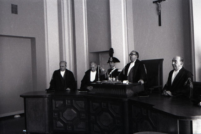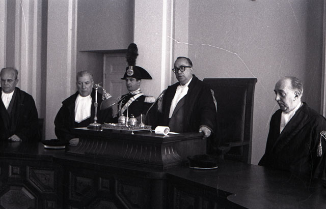 Viene allestita la camera ardente nell'aula magna del Tribunale per il primo presidente della Corte d'Appello di Trieste mancato dopo breve malattia. Nato a Cittaducale nel 1888, Alfonso Consalvo, entra nel 1912 in Magistratura dapprima come uditore nella Corte d'appello di Roma, poi vice pretore a Chieti e in seguito a Lanciano. Nominato Pretore in diverse sedi, nel 1923 ricopre l'ufficio di sostituto procuratore presso il tribunale di Lanciano e nel 1928 a Roma. Nel 1934 diventa consigliere di Corte d'Appello e poi sostituto procuratore generale alla corte di Appello della capitale oltre alla rappresentanza del Pubblico ministero presso il Tribunale dei minori. Distaccato dall'ottobre 1934 presso il Gabinetto del Guardasigilli, diventa Guardasigilli nel 1937. Nel 1942 è nominato Consigliere della Suprema Corte di Cassazione e nel 1955 passa alla Procura generale della Repubblica presso la Corte di Appello di Trieste, diventando nel 1954 Primo Presidente della Corte di Appello. (Notizie tratte da Il PIccolo, 9 maggio 1958)