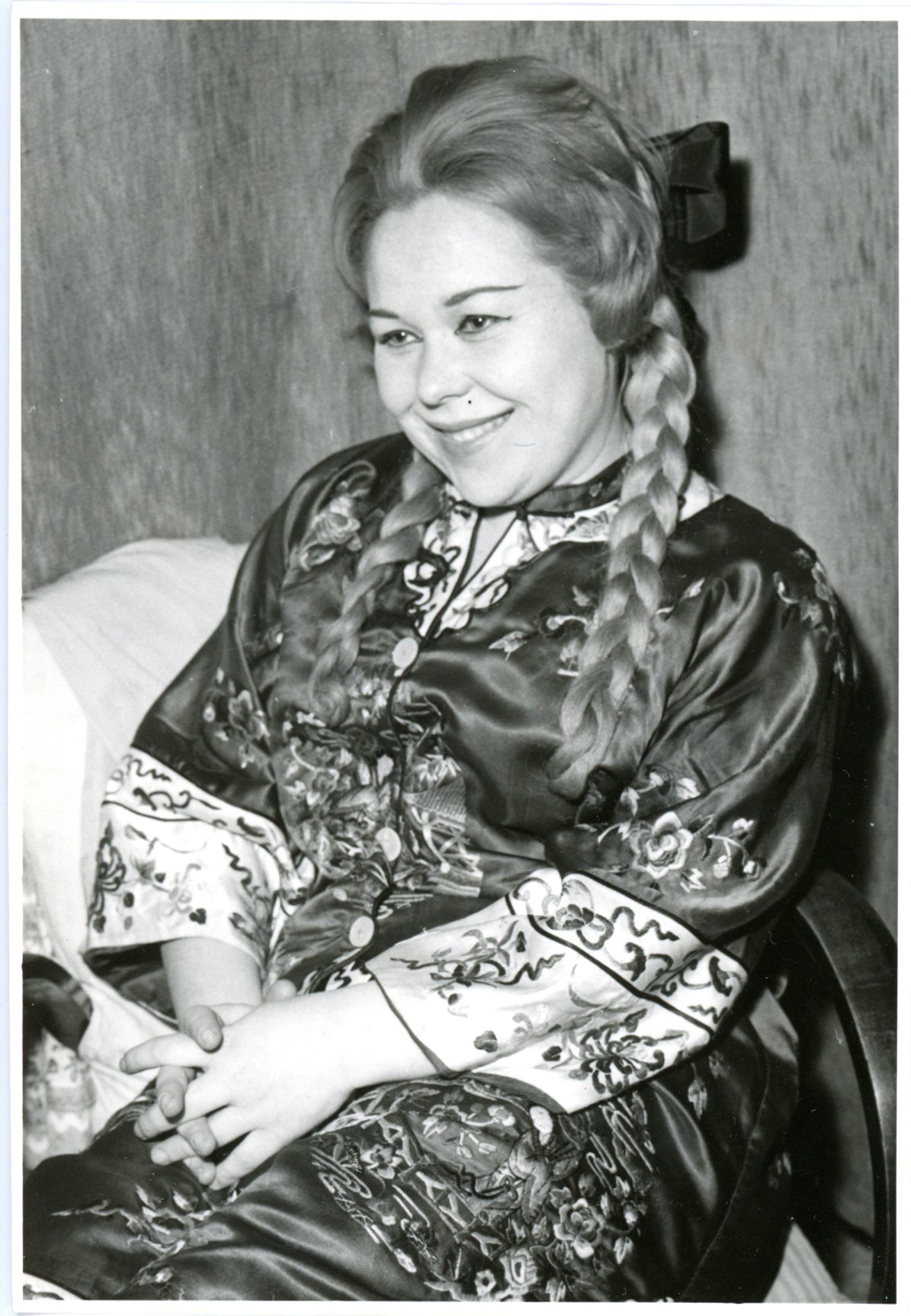 Il celebre soprano in costume nel ruolo di Micaëla nella Carmen rappresentata al Teatro Verdi di Trieste nel gennaio del 1960