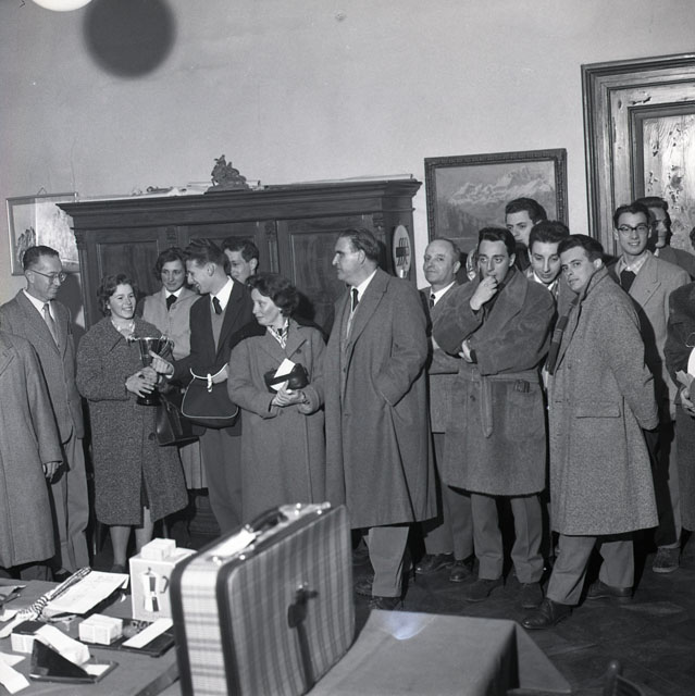 Presso la sede di via Milano della Società Alpina delle Giulie, Renato Timeus consegna il primo premio della miglior immagine del paesaggio carsico a Maristella Zaccariotto