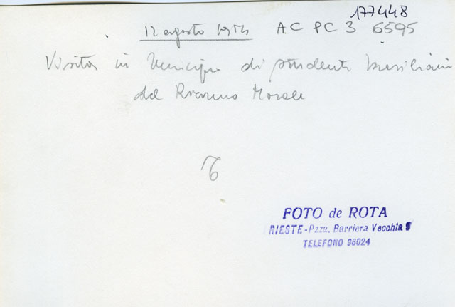 Dodici studenti brasiliani appartenenti al movimento del Riarmo Morale (o Movimento di Caux-sur-Montreux) visitano Trieste. Dalla sua installazione a Caux nel 1946, il movimento del Riarmo morale si impegna per la ricostruzione dell’Europa, riunendo gli ex belligeranti e organizzando conferenze internazionali.