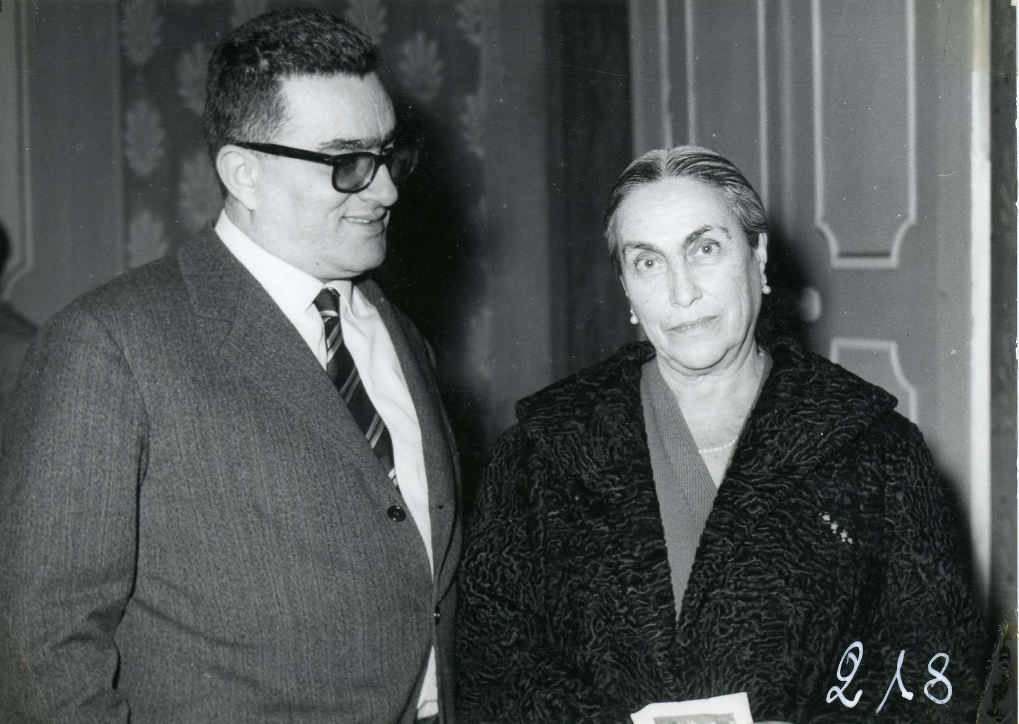 Sandro Bolchi e Letizia Fonda Savio in occasione della rappresentazione di "Un marito" di Italo Svevo al Teatro Nuovo, Trieste 1961 per la regia di Sandro Bolchi
