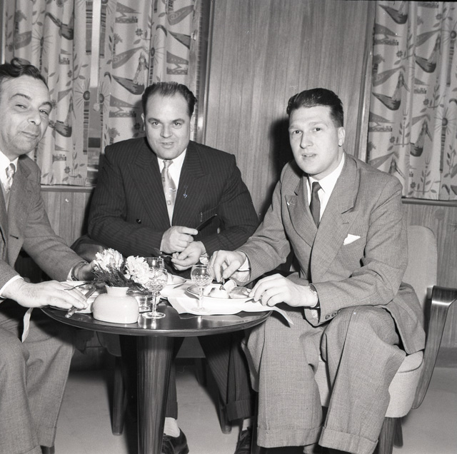 Il sottosegretario alla Marina mercantile Fernando Tambroni in visita alla motonave Australia, Trieste aprile 1951 (da: Trieste anni Cinquanta. La città delle forme, p. 91-92)
