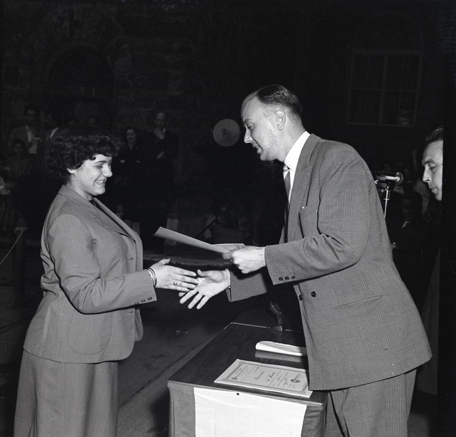 Nel cortile della scuola elementare Ruggero Manna hanno luogo: la consegna degli attestati, il saggio di pianoforte e di danza, l'esposizione dei lavori di taglio e cucito, la premiazione delle studentesse prime classificate al premio letterario femminile Haydee 1951.
