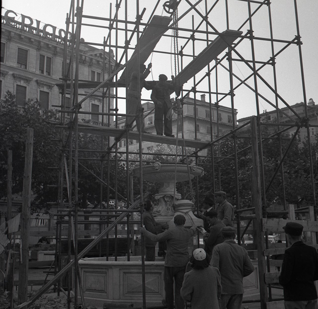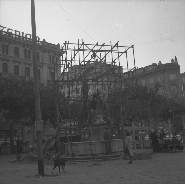Ripristino della fontana, opera dell'architetto Giuseppe Bernardi e dello scultore Giovanni Depaul, dopo il restauro effettuato a cura di Nino Spagnoli.