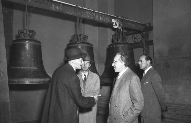 Quarantasette nuove campane, in sostituzione di quelle requisite o distrutte durante la guerra, vengono benedette dal vescovo Santin davanti alla Chiesa di Sant'Antonio Taumaturgo