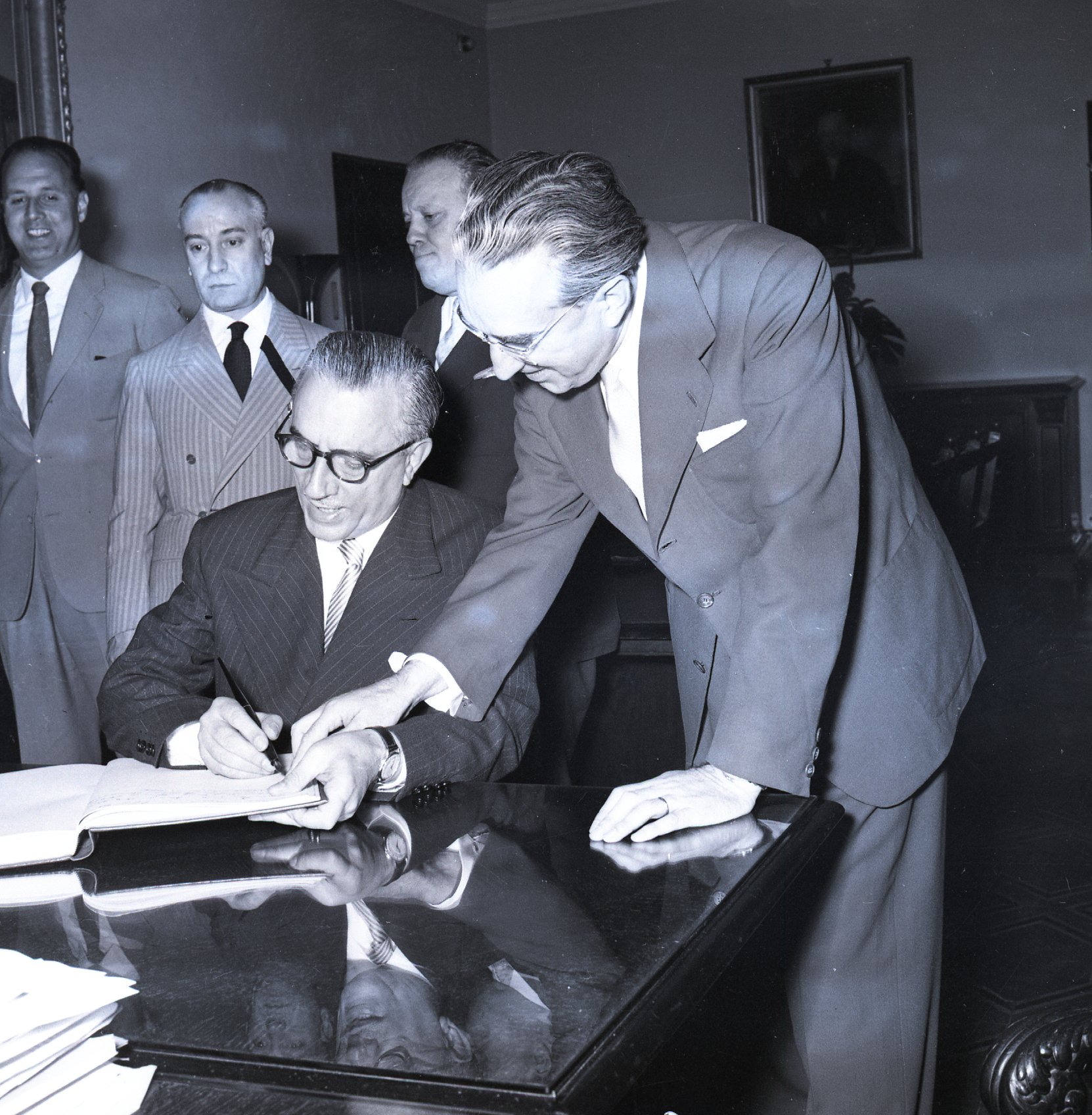 Il ministro dell'industria e del commercio, Pietro Campilli, in visita al municipio di Trieste