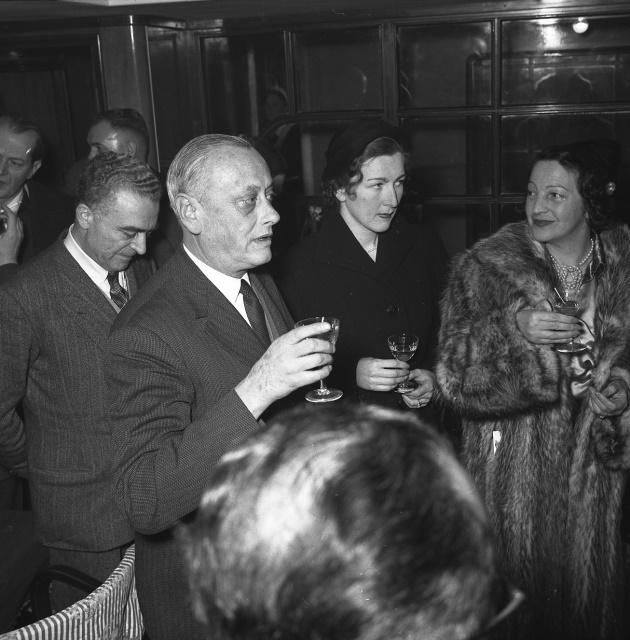 Rinfresco offerto dalla Societa Tirrenia in occasione dell'inaugurazione della nuova linea Adriatico-Spagna, a bordo della motonave Città di Messina. Gli onori di casa vengono fatti dal dott. Marra (da: Trieste 1900-1999. Cent'anni di storia, v. 6, p. 240)