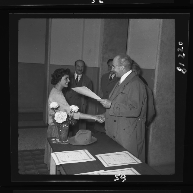 Le manifestazioni di chiusura dell'anno accademico dell'Università Popolare si svolgono in diverse scuole cittadine. Hanno luogo la consegna degli attestati, il saggio di pianoforte e di danza, l'esposizione dei lavori di taglio e cucito, la premiazione delle studentesse prime classificate al premio letterario femminile Haydee 1953.
