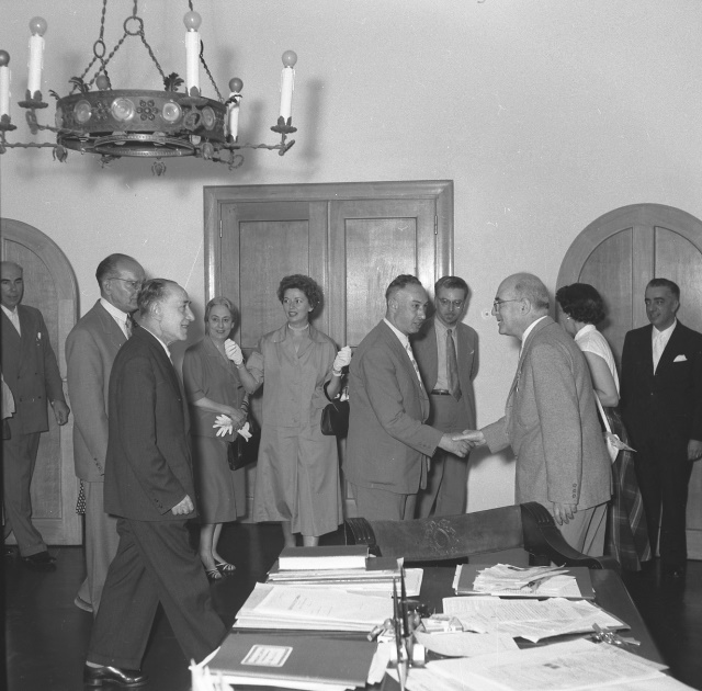 Invitati dal magnifico rettore prof. Rodolfo Ambrosino, sono giunti a Trieste i Provveditori agli studi di Gorizia e Udine, nonche i presidi dei licei classici e scientifici e degli istituti commerciali e industriali di Udine, Gorizia, Pordenone, Maniago, Tolmezzo, Cividale e Monfalcone, che sono stati accompagnati in visita all'Università (da: Giornale di Trieste, 17 luglio 1953)