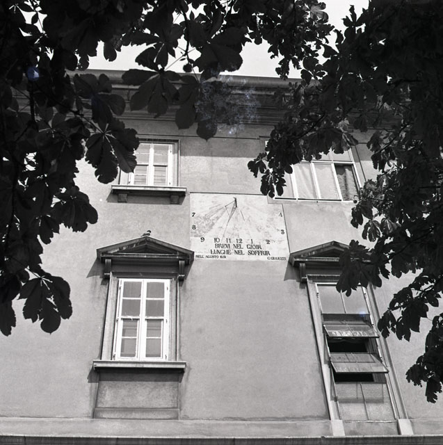 Meridiane sulle facciate delle case. Statuetta vincitrice del concorso per la realizzazione di un piccolo gruppo in bronzo che sarà donato in occasione del 'Premio Cinematografico' del Festival dei Ragazzi. Alla base del bronzetto il motto 'Aldebaran 5', autore lo scultore triestino Adriano Alberti.