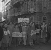 Molti disoccupati triestini, in attesa da tempo di un lavoro dignitoso, inscenano una turbolenta manifestazione, attraversando in corteo le vie del centro e paralizzando il traffico cittadino per tre giorni consecutivi (da: Trieste 1900-1999. Cent'anni di storia, v. 6, p. 267)