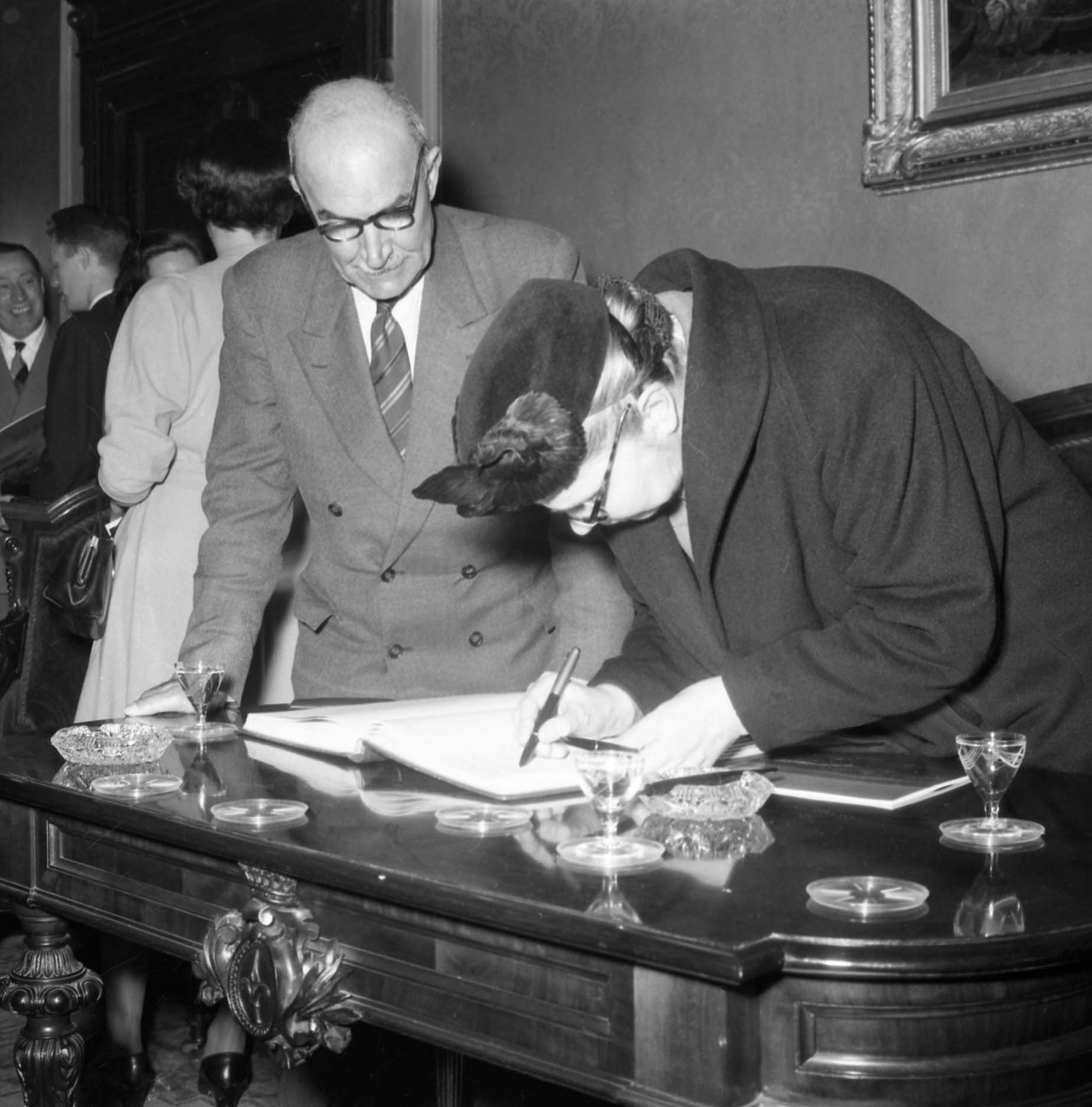 13 studenti universitari di Trieste con il tribuno si recano a Caux sur Montreux per partecipare alla conferenza del movimento del Riarmo Morale (o Movimento di Caux-sur-Montreux). Dalla sua installazione a Caux nel 1946, il movimento del Riarmo morale si impegna per la ricostruzione dell’Europa, riunendo gli ex belligeranti e organizzando conferenze internazionali.