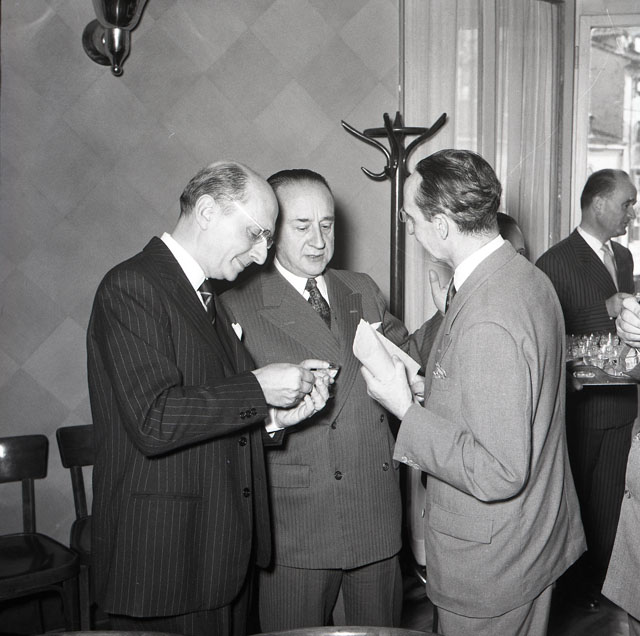 L'avv. Vitelli, direttore superiore per gli affari civili dell'Amministrazione del G.M.A., e il marchese Cristoforo Fracassi, consigliere politico del governo italiano presso il G.M.A., si congedano durante un ricevimento ufficiale tenuto presso il Municipio, dalle massime autorita cittadine