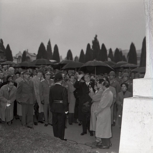 Monumento a ricordo delle persone cadute sotto il fuoco della polizia civile durante le giornate del 5 e 6 novembre 1953, opera dello scultore Marcello Mascherini. (da: Trieste 1900-1999. Cent'anni di storia, v. 6, p. 299)
