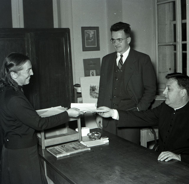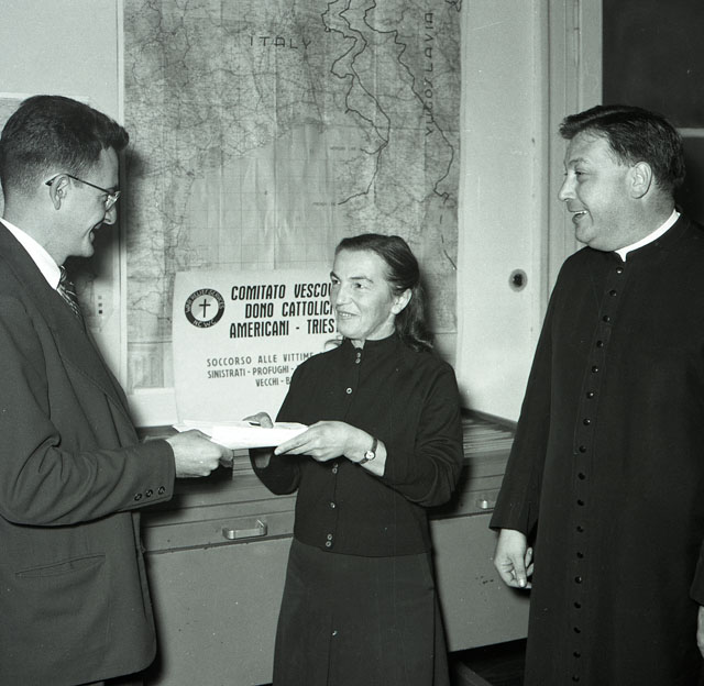 Maria Copich è la prima profuga giuliana che ha ottenuto il visto per gli Stati Uniti d'America in base alla legge del 1953 sull'emigrazione. Mister Dick Haising, ufficiale americano per l'emigrazione, e don Alfredo Bottizer, dirigente dell'ufficio triestino del Comitato cattolico americano, hanno consegnato alla Copich il documento. La profuga andrà a raggiungere a Washington la famiglia del colonnello Peterson, presso la quale ha prestato servizio, a Villa Opicina, sino al 1951, quando l'alto ufficiale rimpatriò. Varata la legge sull'emigrazione, il colonello Peterson richiamò in America la fedele cameriera. Tratto da "Il Piccolo", 11.11.1954