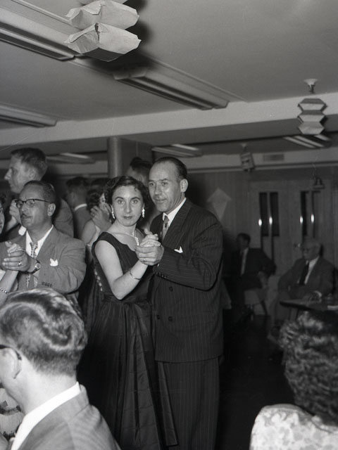 Croceristi ripresi a bordo della Motonave Africa. Gli interni della nave: la sala da ballo.