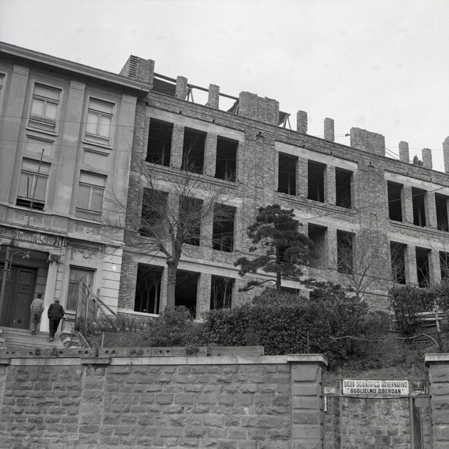 Immagini dell'esterno della sede del Liceo scientifico Guglielmo Oberdan di Trieste in fase di costruzione