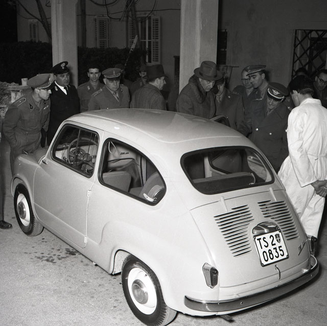 Domenica 13 marzo 1955 ha luogo in piena città la parata delle nuove utilitarie lanciate sul mercato dalla Fiat. Una quarantina di "600" percorre il festoso carosello delle vie cittadine raggiungendo il piazzale di San Giusto e ripercorrendo quindi le vie del centro e le Rive. E' la prima uscita ufficiale alla conquista di un vasto pubblico della nuova macchina