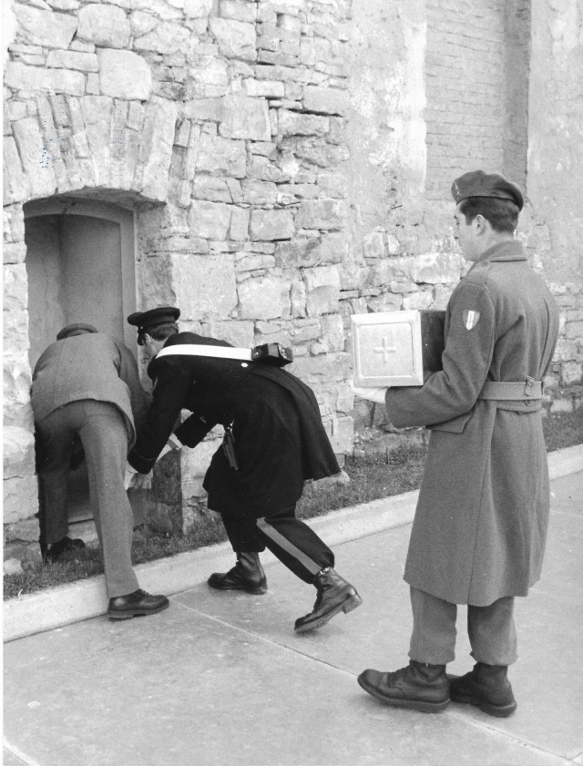 I militari depongono le cassette delle ceneri nella nicchia ricavata nel muro