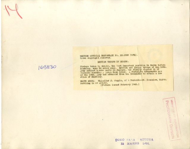 Guerra mondiale 1939-1945 - Partecipazione dei Soldati inglesi - Birmania