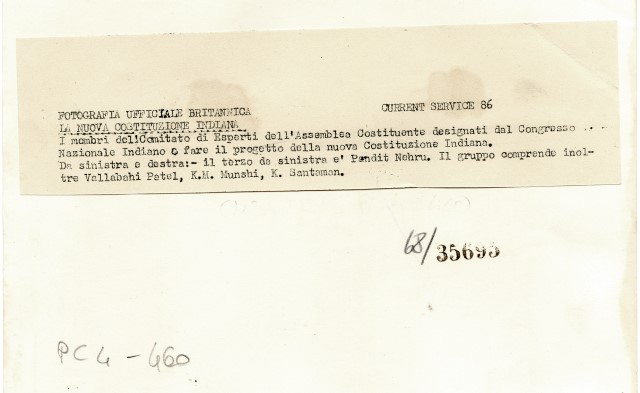 Foto dei membri dell'Assemblea costituente svoltasi il 23 agosto 1946 a Bombay e raffigurante tra i vari personaggi Pandit Nehru