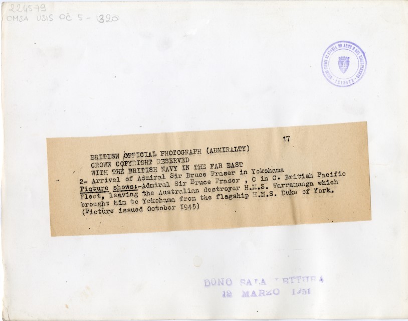 L'Ammiraglio inglese Sir Bruce Fraser approda sulle coste di Yokohama.