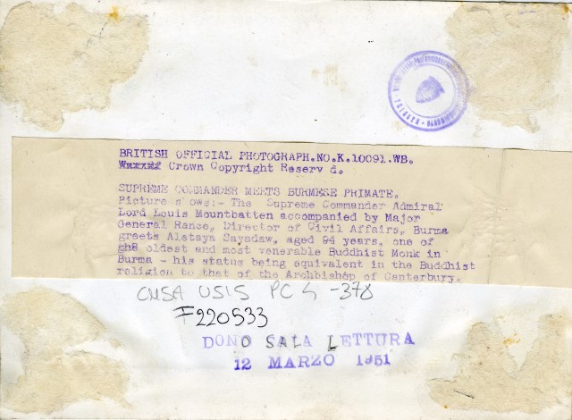 Lord Mountabatten incontra Alataja Sayataw, monaco buddista di 94 anni, capo dei buddisti birmani.