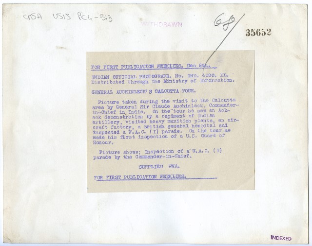 Visita del Generale Claude Auchinleck, comandante in capo in India. La foto rappresenta una parata del W.A.C.