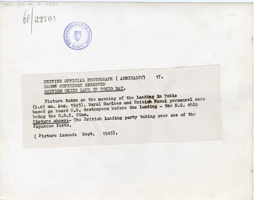 Le truppe britanniche occupano un forte giapponese nella baia di Tokyo.
