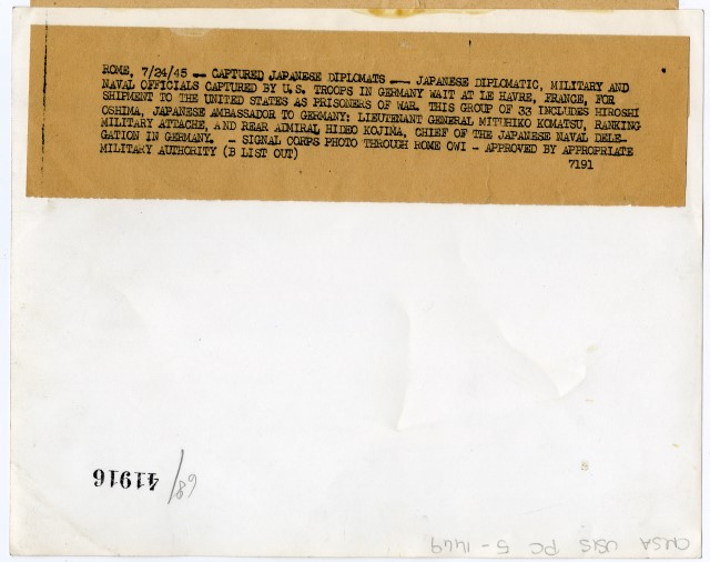 Gruppo di trentatrè diplomatici giapponesi catturati in Germania stanno per partire da Le Havre (Francia) per gli Stati Uniti, dove saranno trattenuti come prigionieri di guerra.
