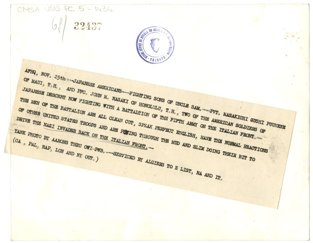 Nell'immagine due soldati di origine giapponese combattono per l'esercito americano sul fronte italiano.