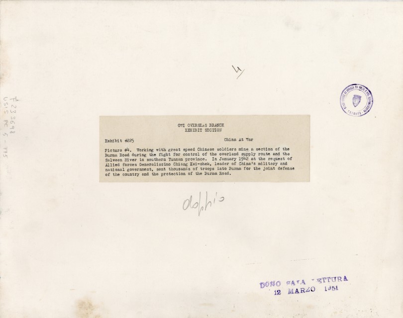 Working with great speed Chinese soldiers mine a section of the Burma Road