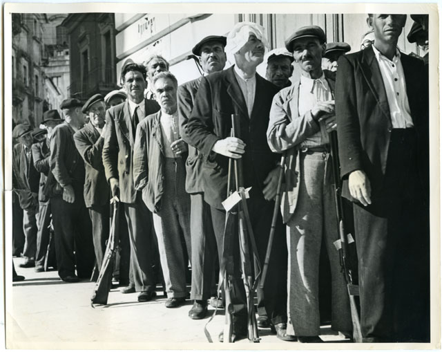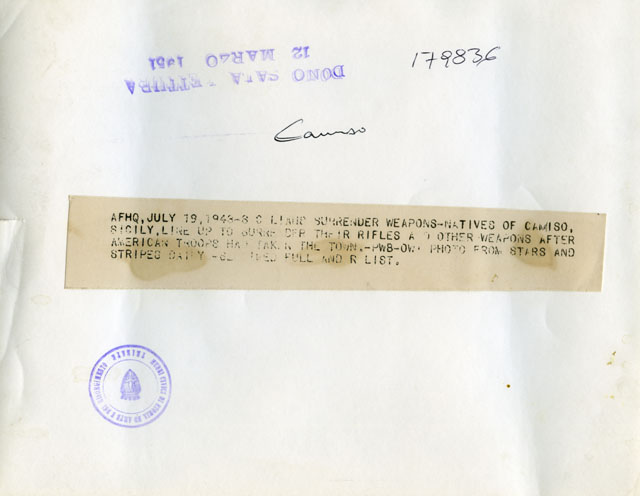 Gli abitanti di Comiso consegnano le armi agli alleati.