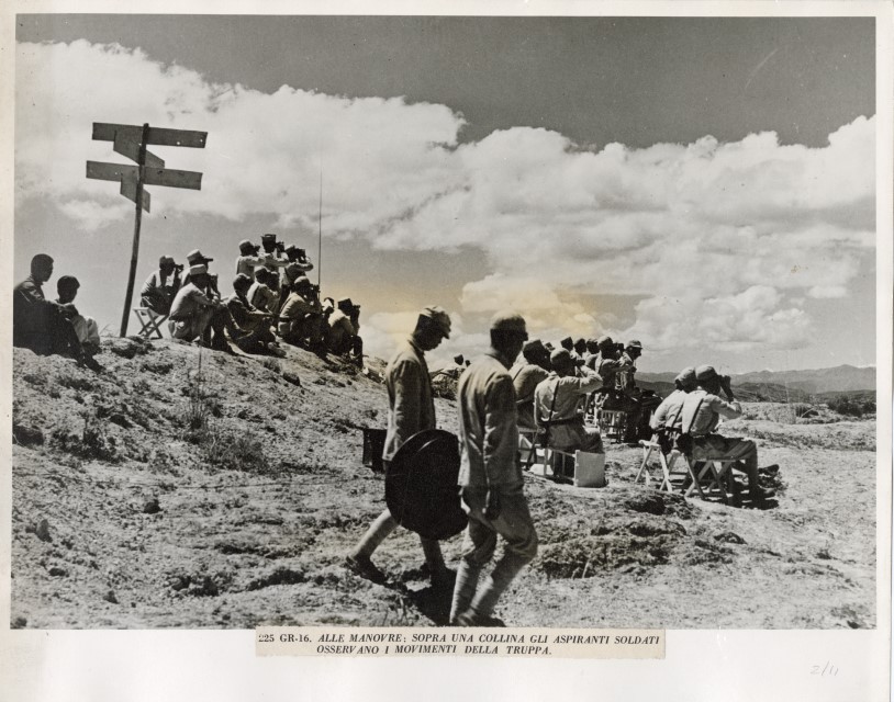 Gruppo di soldati cinesi osservano gli esiti dell'azione dell'Artiglieria dalla cima di una collina