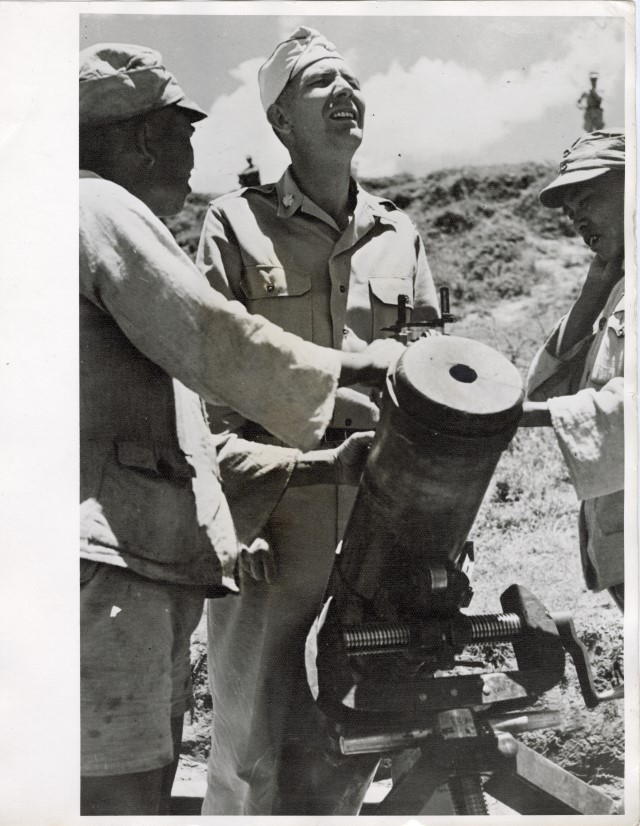 HomeCina : un ufficiale americano istruisce i soldati cinesi nell'impiego di un mortaio fornito dagli Stati Uniti per le operazioni contro i giapponesi